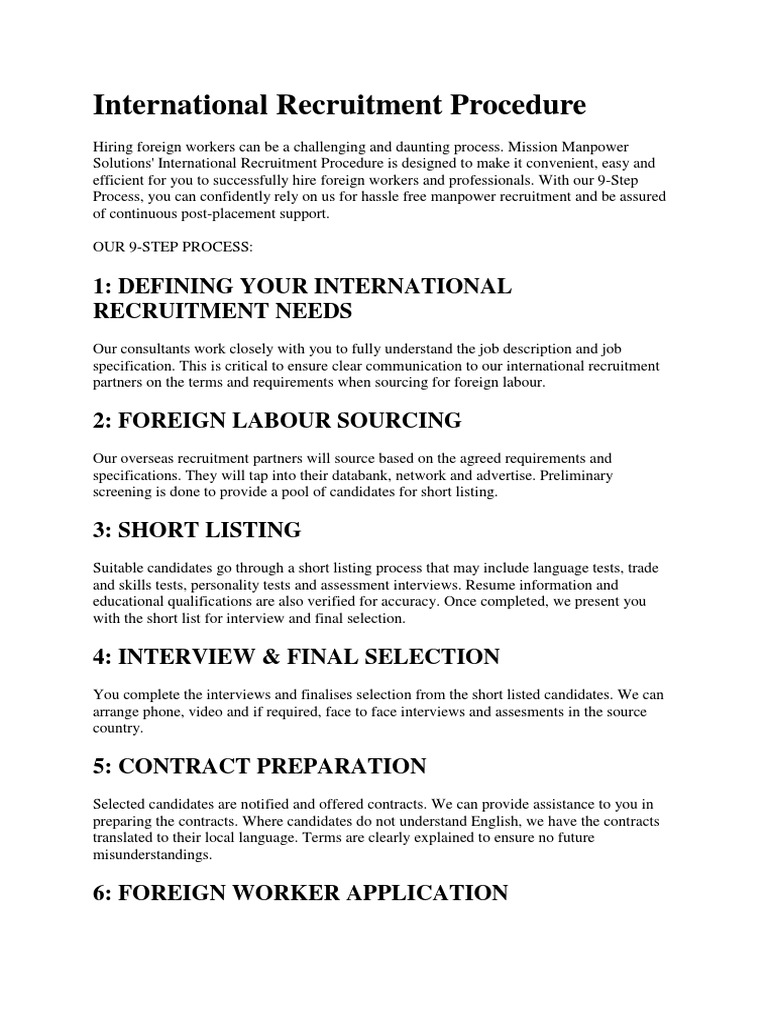 Solutions' International Recruitment Procedure is designed to make it convenient, easy and