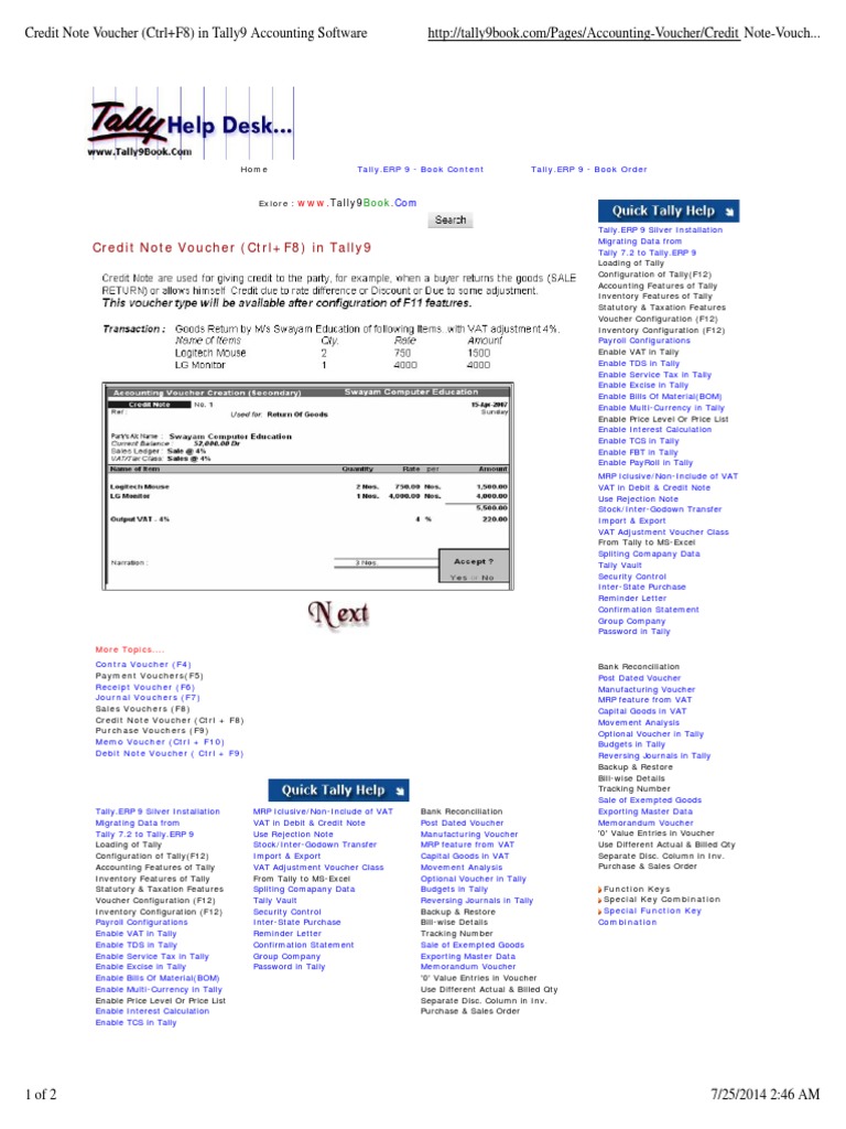 Credit Note Voucher (Ctrl+F8) in Tally9 Accounting Software http://tally9book.com/Pages/Accounting-Voucher/Credit Note-Vouch...