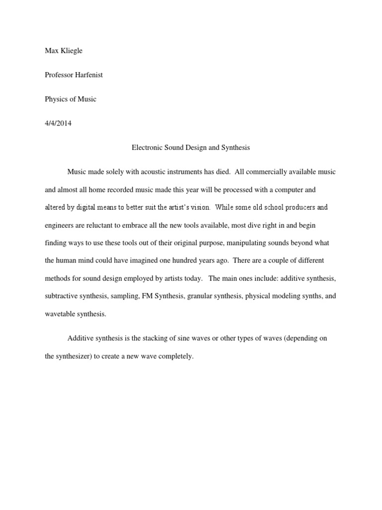 methods for sound design employed by artists today. The main ones include: additive synthesis,
