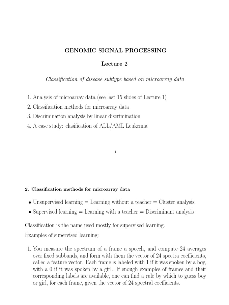 1. Analysis of microarray data (see last 15 slides of Lecture 1)