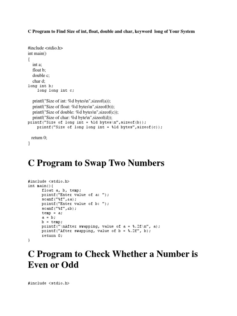 C Program to Find Size of int, float, double and char, keyword long of Your System