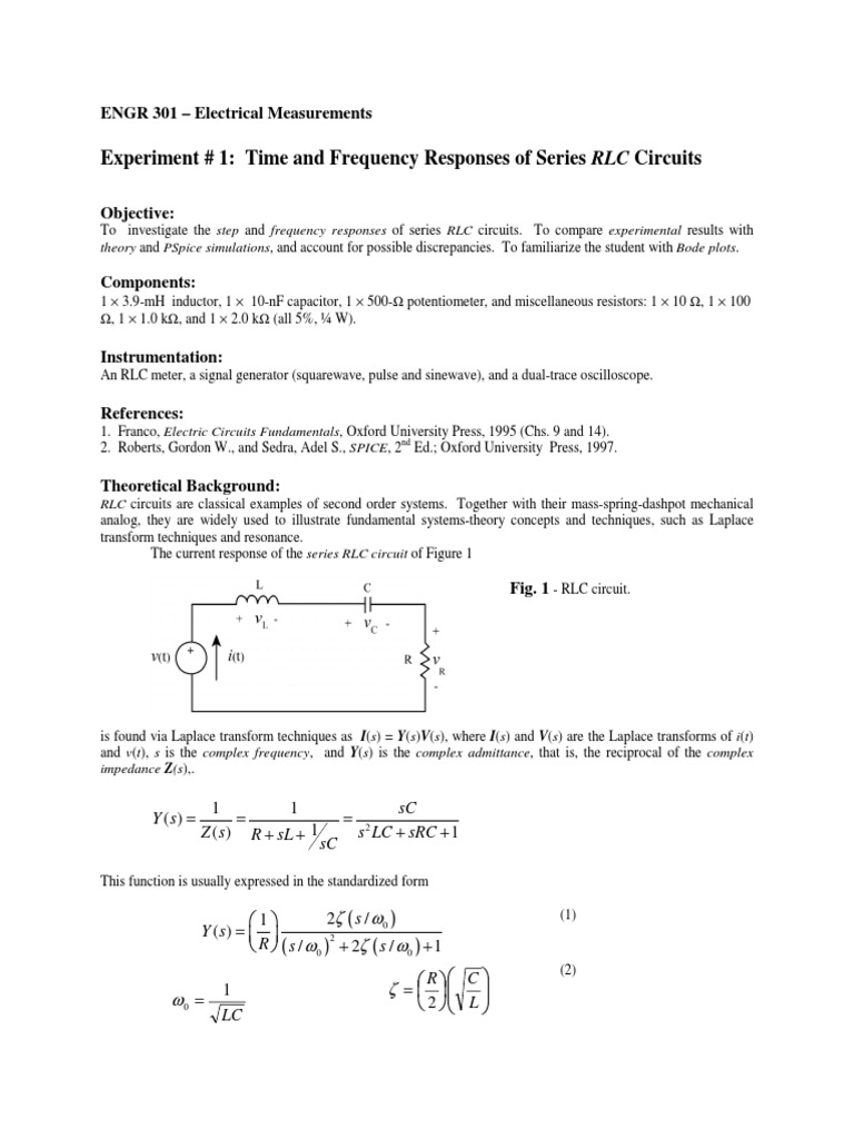 Experiment # 1: Time and Frequency Responses of Series RLC Circuits