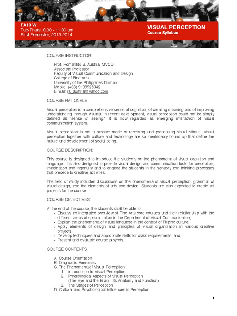The eld of study includes discussions on the phenomena of visual perception, grammar of