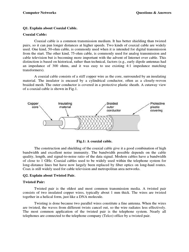 pairs, so it can pan longer distances at higher speeds. Two kinds of coaxial cable are widely