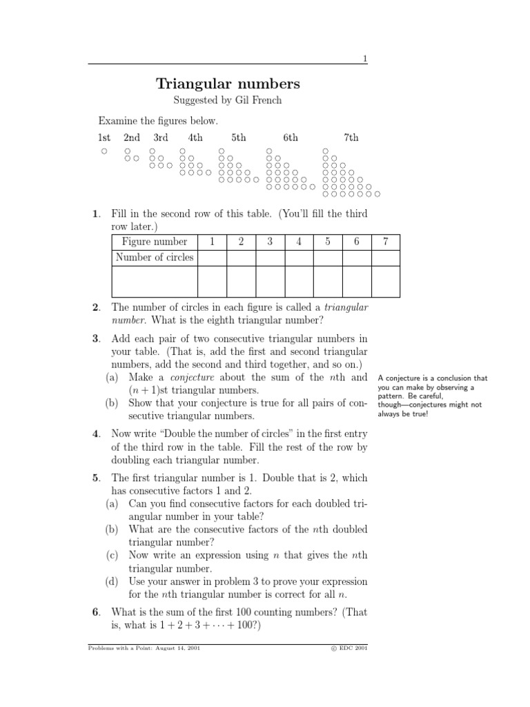 Hint to problem 6. The sum of the rst 100 counting numbers