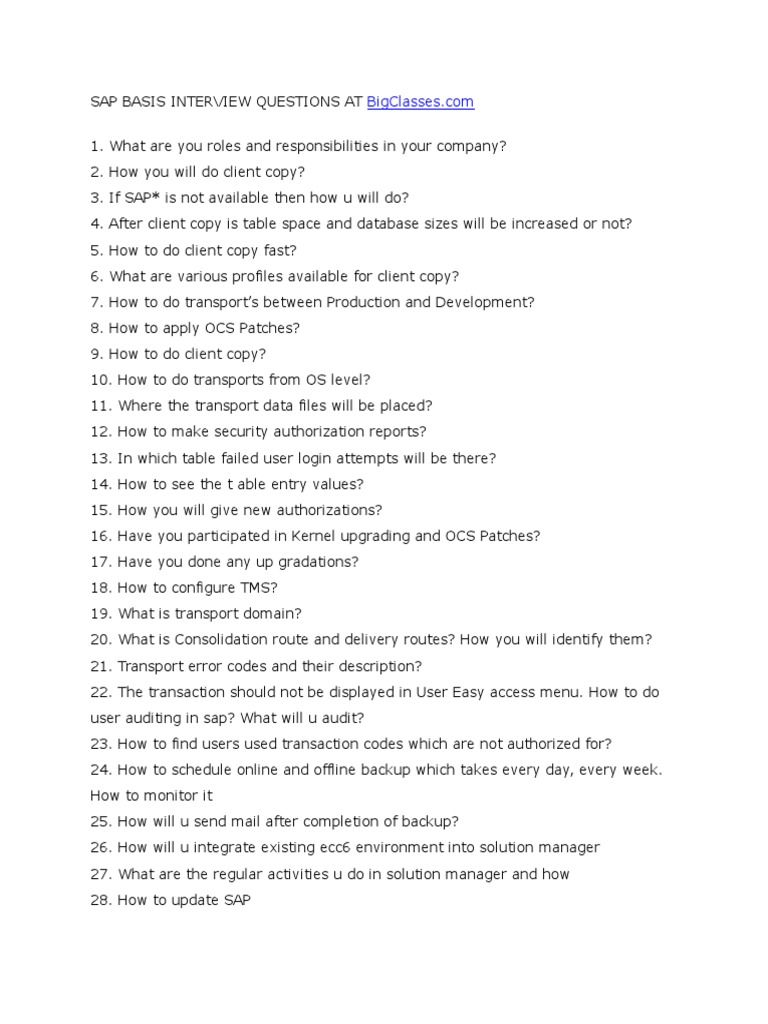 SAP BASIS INTERVIEW QUESTIONS AT BigClasses.