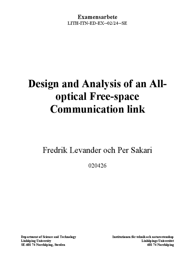 Design and Analysis of An All-Optical Free-Space Communication Link