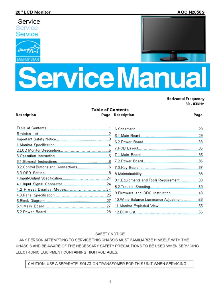 procedures recommended by AOC and described in this service manual are effective methods of performing service