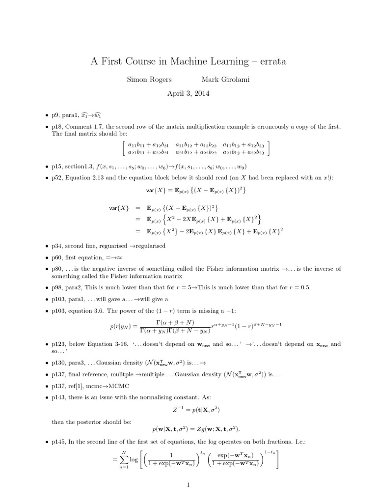 p145, In the second line of the rst set of equations, the log operates on both fractions. I.e.: