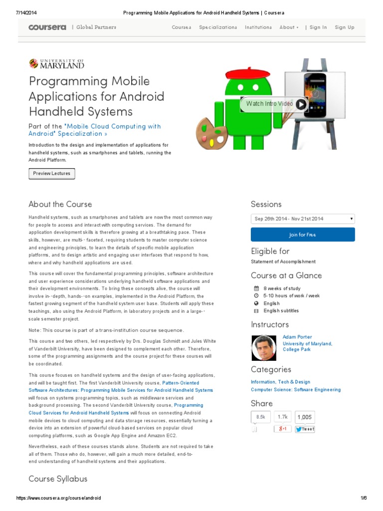 7/14/2014 Programming Mobile Applications for Android Handheld Systems | Coursera