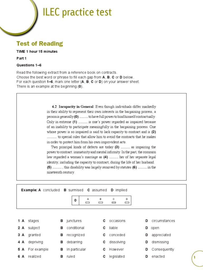 LETTERS on your answer sheet. There is an example at the beginning (0).