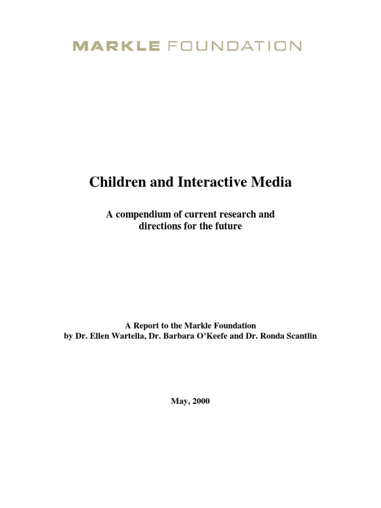 by Dr. Ellen Wartella, Dr. Barbara OKeefe and Dr. Ronda Scantlin