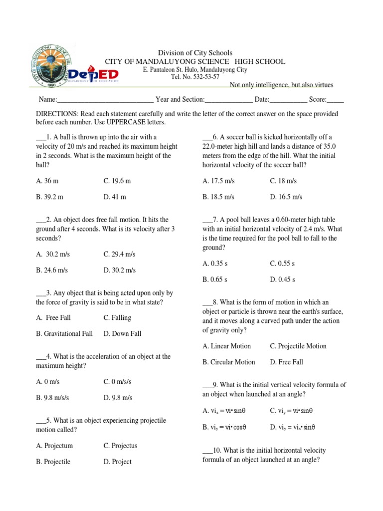 A. Linear Motion C. Projectile Motion
