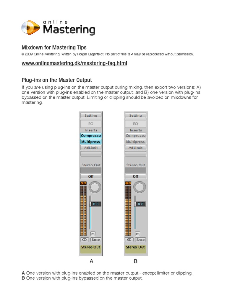2009 Online Mastering, written by Holger Lagerfeldt. No part of this text may be reproduced without permission.