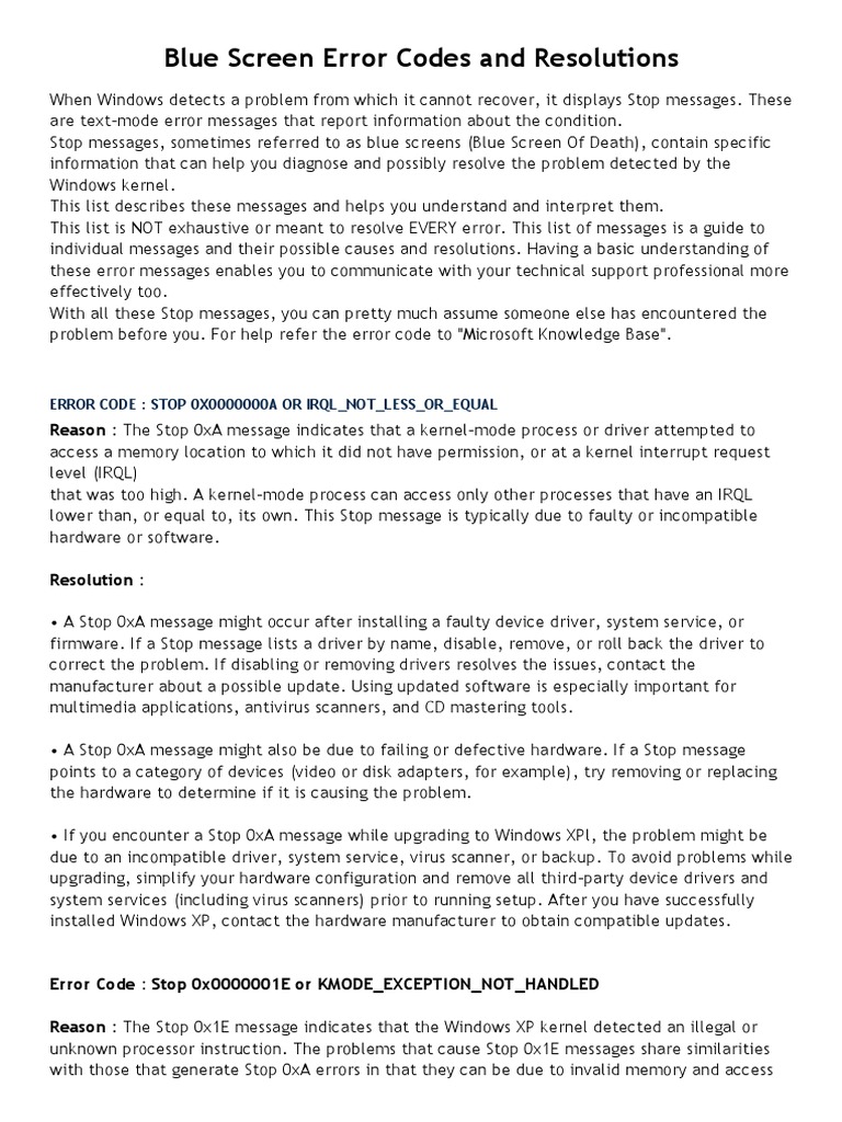 Stop messages, sometimes referred to as blue screens (Blue Screen Of Death), contain specific