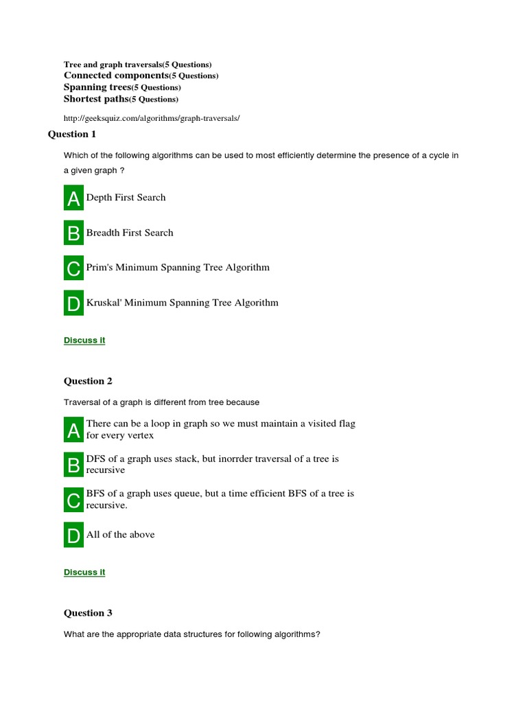 Tree and graph traversals(5 Questions)