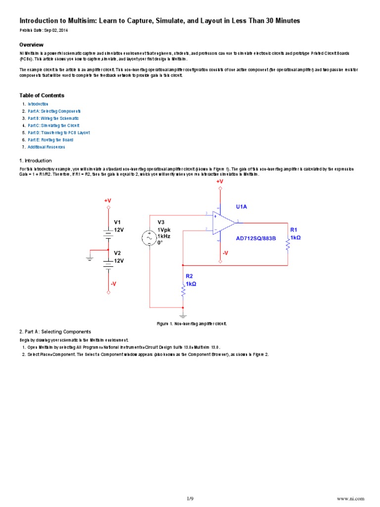 (PCBs). This article shows you how to capture,simulate, and layout your first design in Multisim.