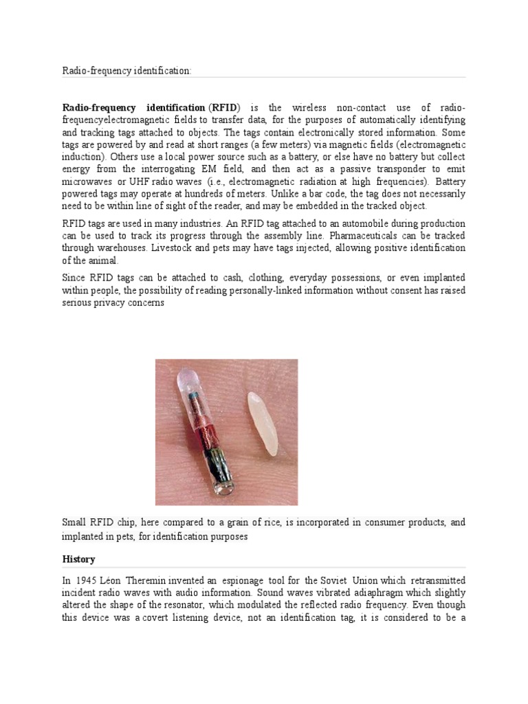 Radio-frequency identification (RFID) is the wireless non-contact use of radio-