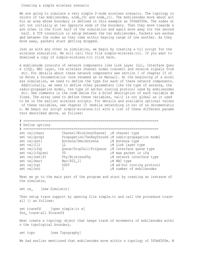 wireless simulation. We will call this file simple-wireless.tcl. If you want to