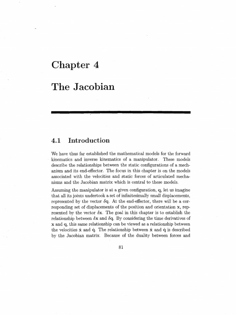 Assuming the manipulator is at a given configuration, q, let us imagine