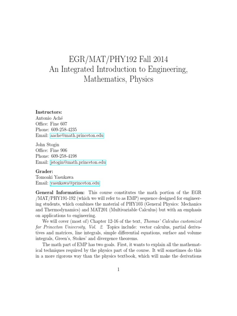 and Thermodynamics) and MAT201 (Multivariable Calculus) but with an emphasis