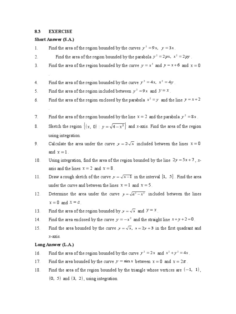 1. Find the area of the region bounded by the curves x y x y 3 , 9