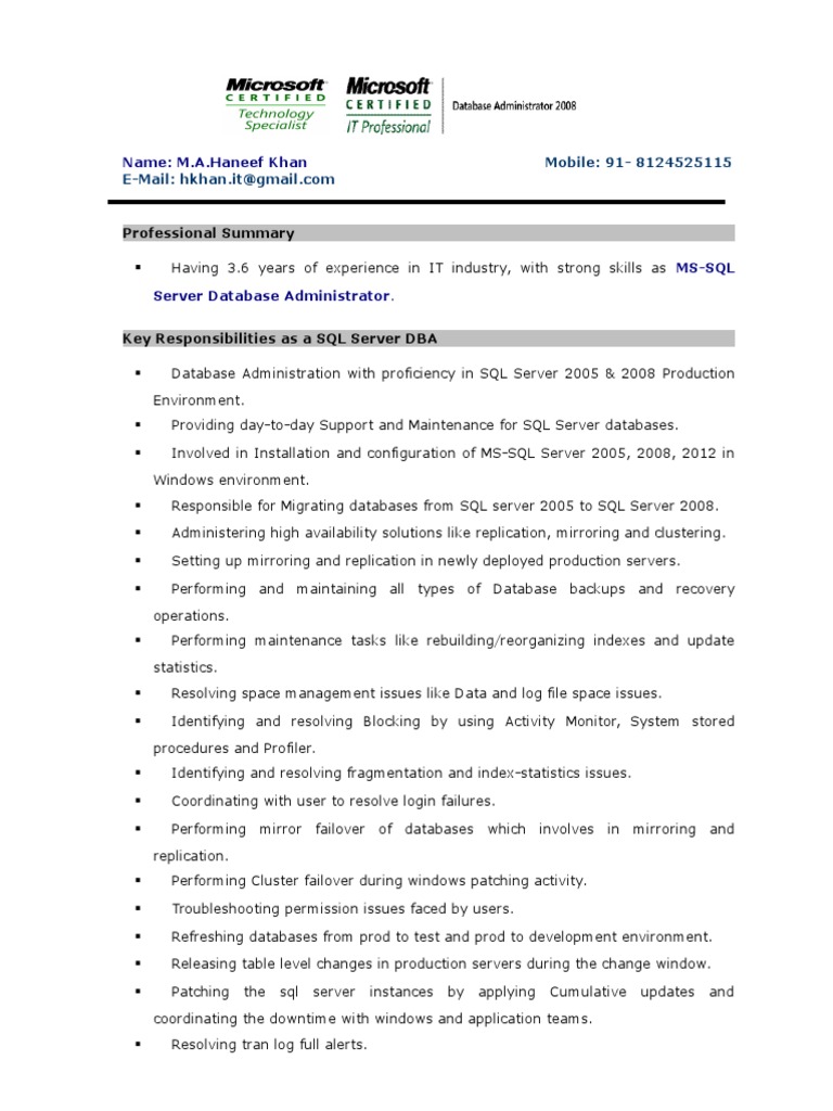 Database d!inistration with proficiency in "#$ "erver %&&' ( %&&) *roduction