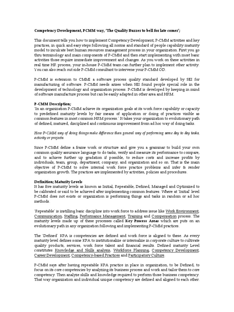 This document tells you how to implement Competency Development, P-CMM activities and key