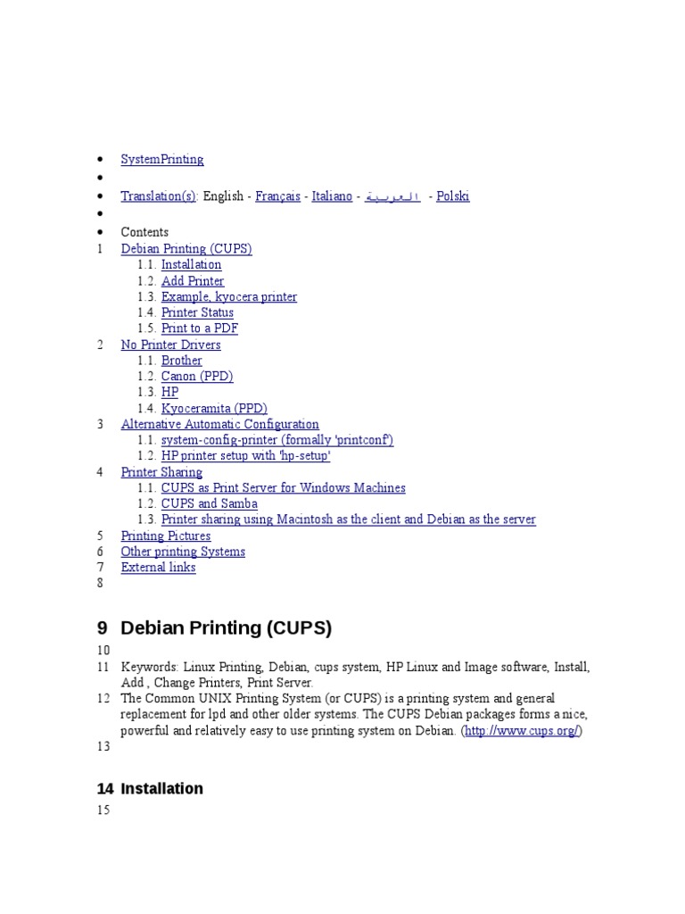 re&la(ement 1or l&# an# other ol#er systems The CUPS Debian &a(kages 1orms a ni(e'
