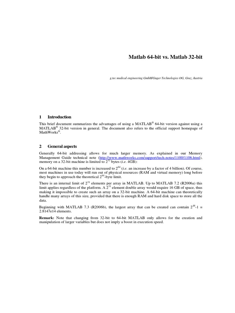 Remark: Note that changing from 32-bit to 64-bit MATLAB only allows for the creation and