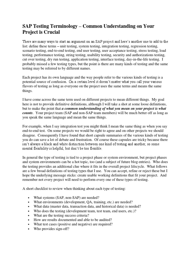 functionality and test the changes in the application. The SAP tester needs common testing mind