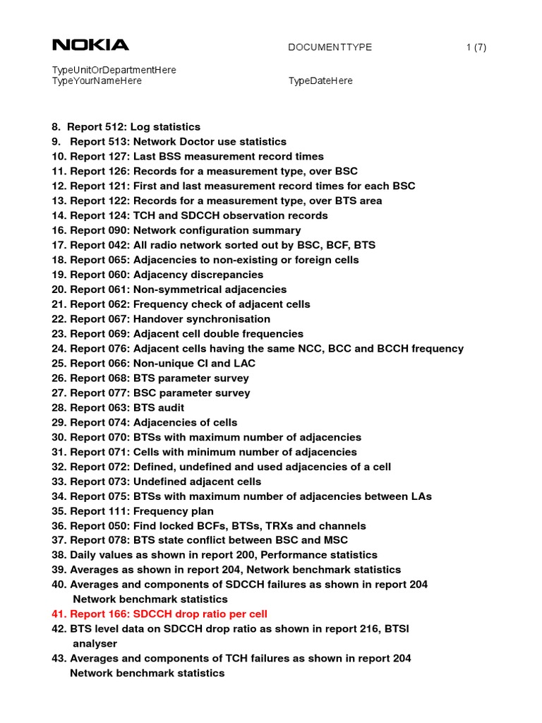 41. Report 166: SDCCH drop ratio per cell