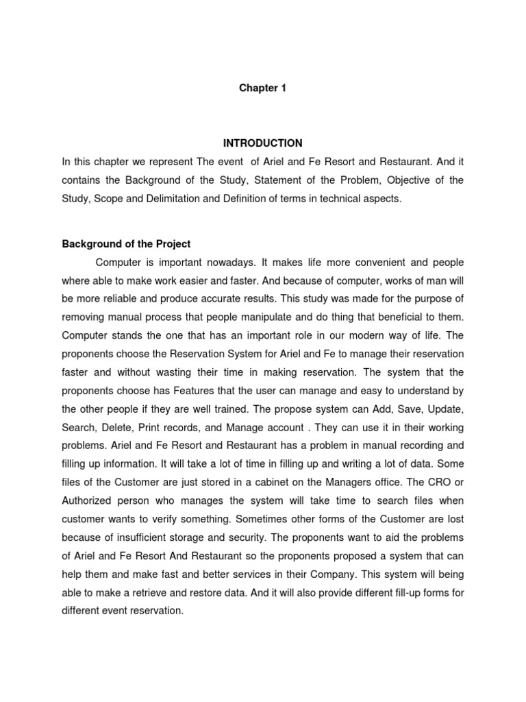 The study aim to develop a reservation system for Ariel and Fe Restaurant to
