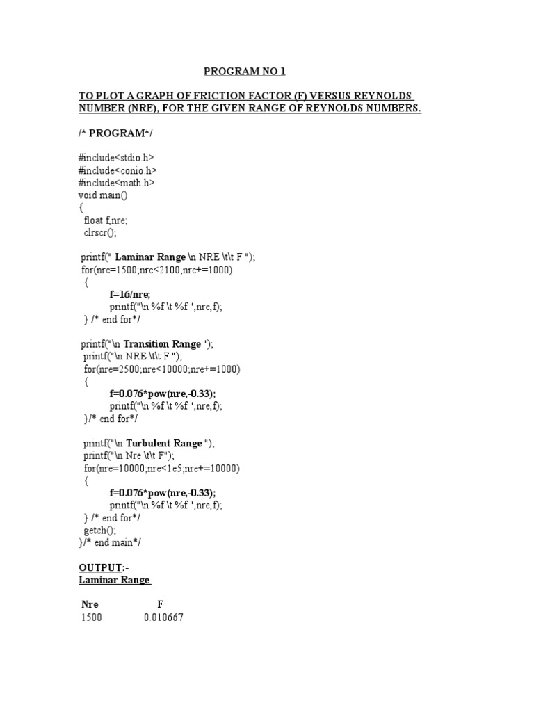 TO PLOT A GRAPH OF FRICTION FACTOR (F) VERSUS REYNOLDS