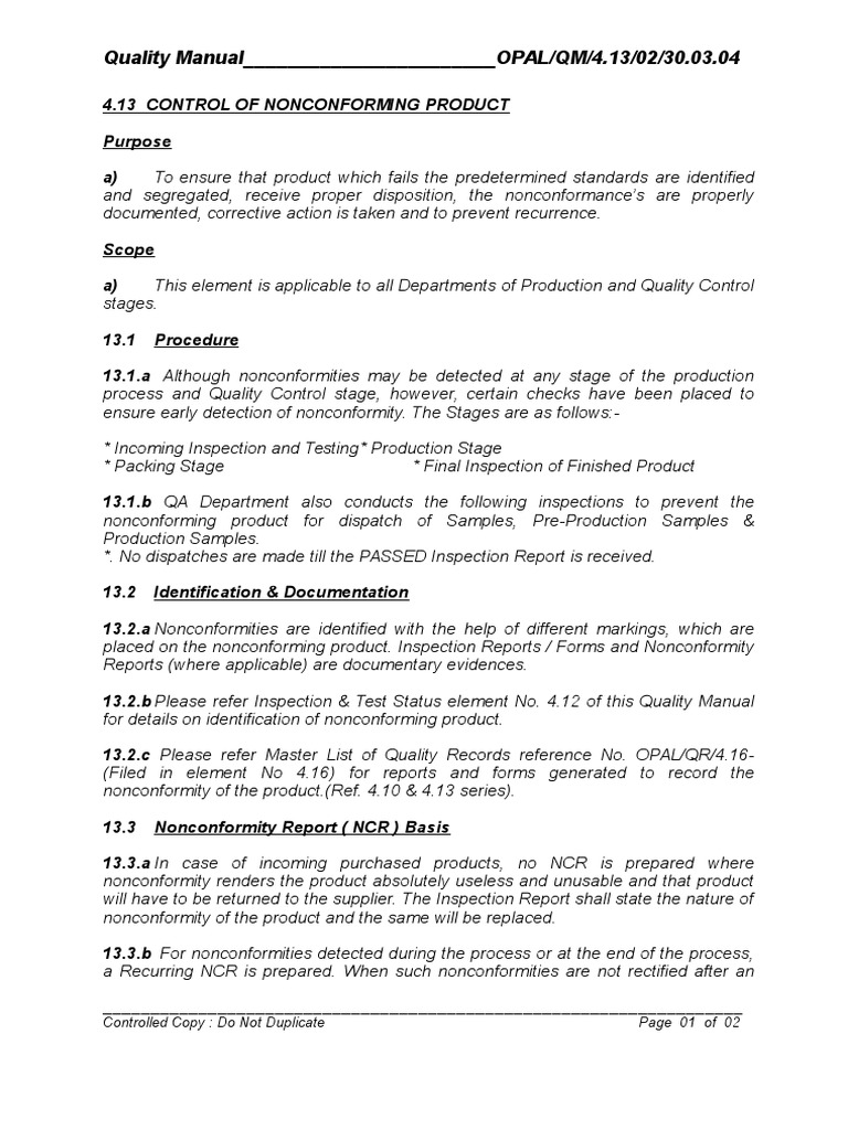 4.13 CONTROL OF NONCONFORMING PRODUCT