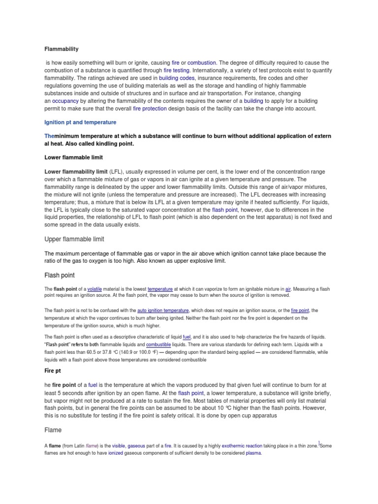 least 5 seconds after ignition by an open flame. At the flash point, a lower temperature, a substance will ignite briefly,