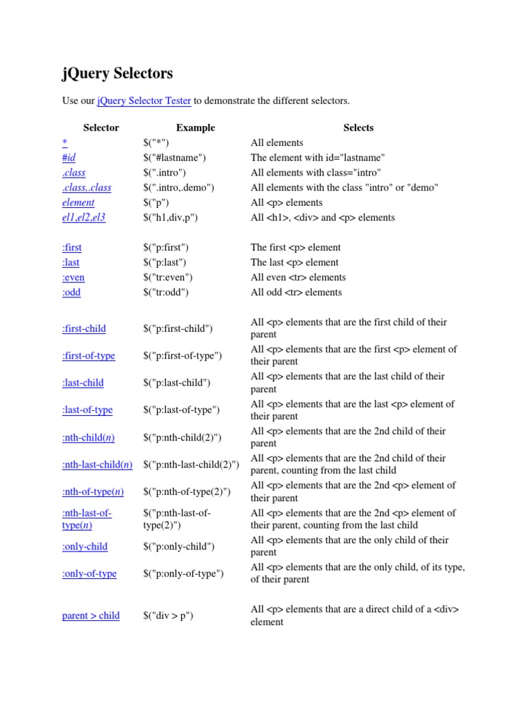 Use our jQuery Selector Tester to demonstrate the different selectors.