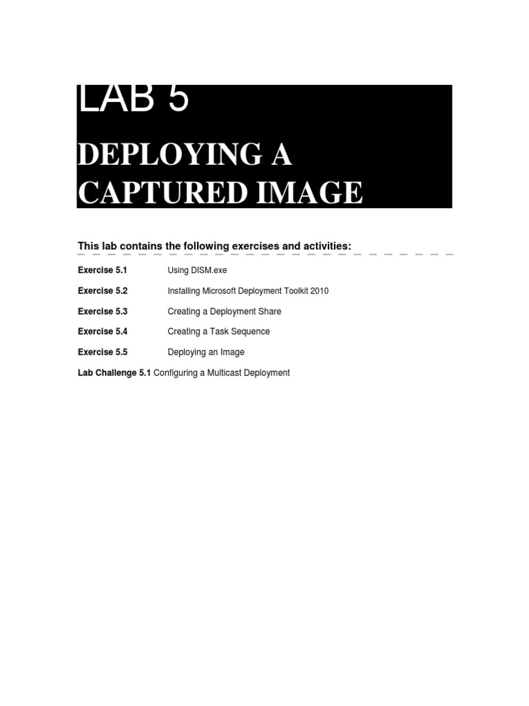Overview In Exercise 5.5, use MDT 2010 to deploy an image file using the task