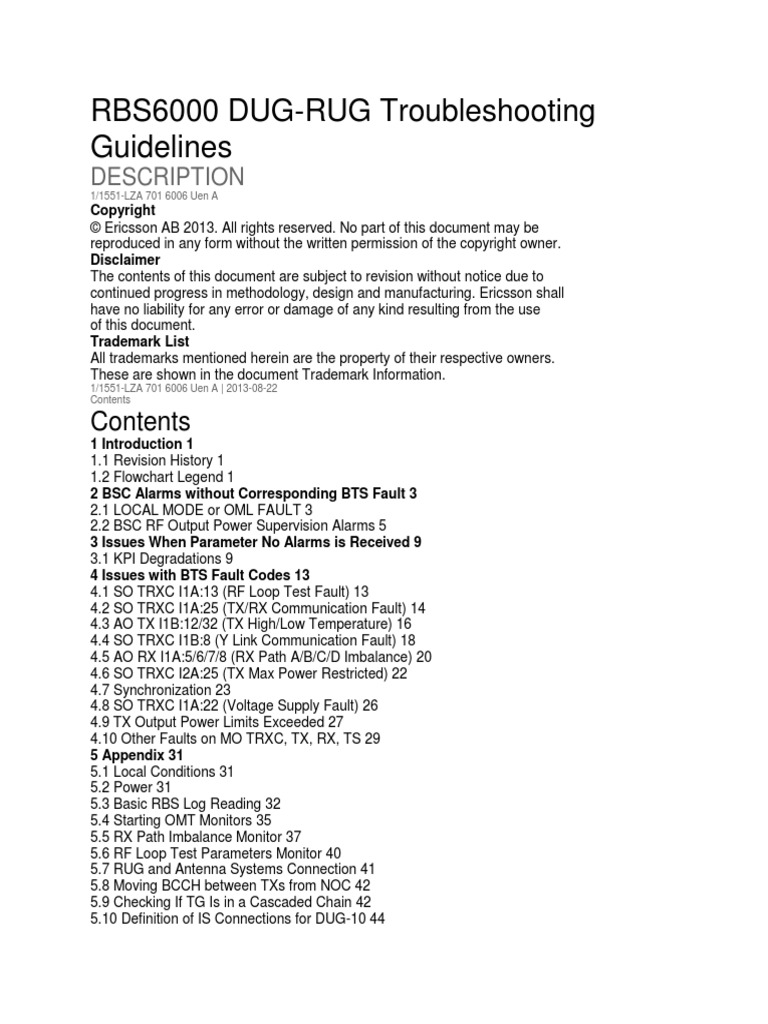 RBS6000 DUG-RUG Troubleshooting Guidelines