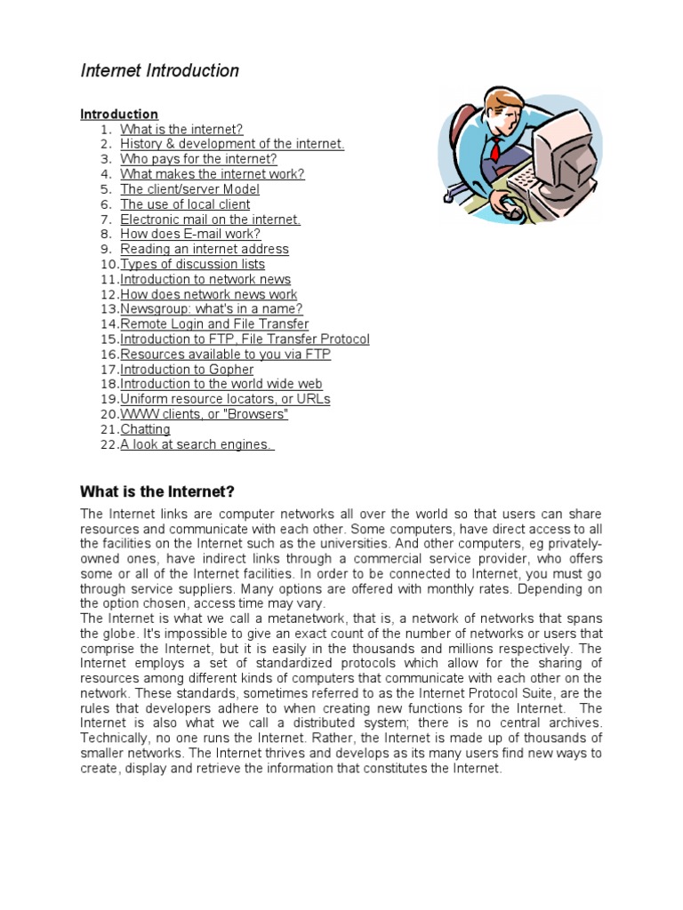some or all of the Internet facilities. In order to be connected to Internet, you must go