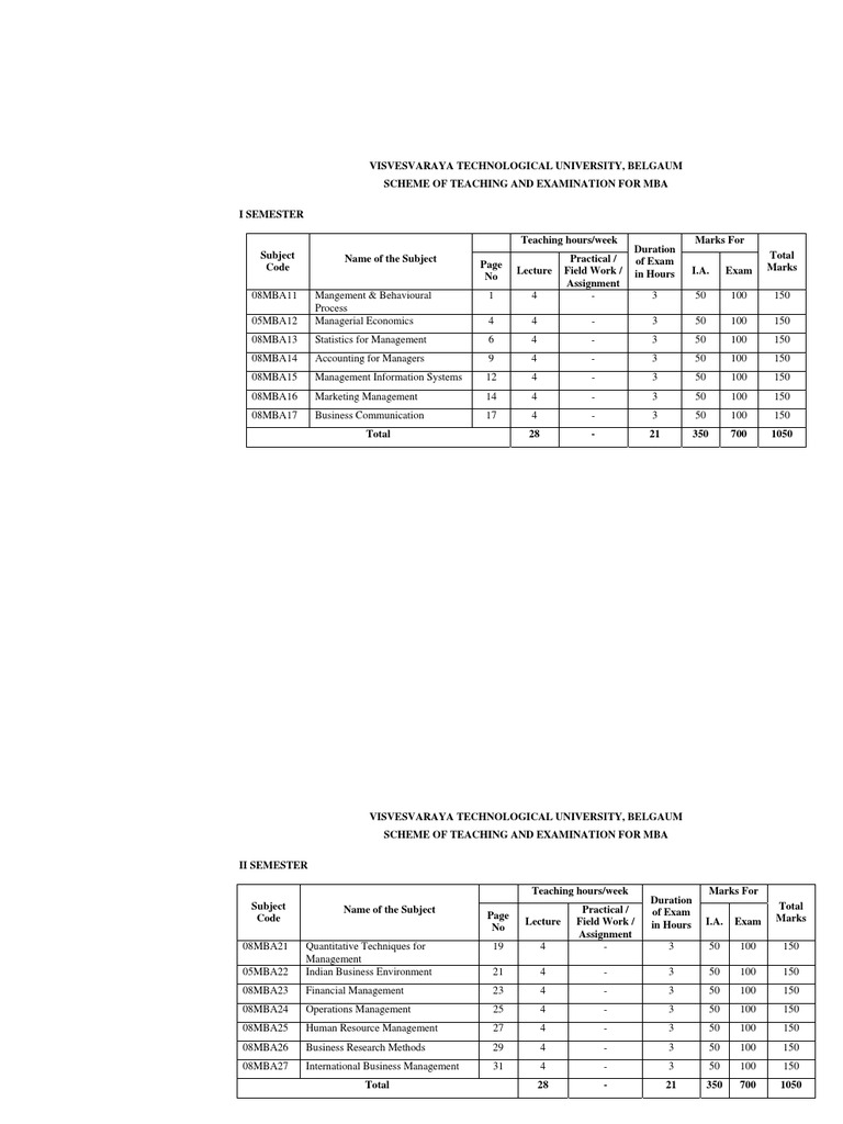 SCHEME OF TEACHING AND EXAMINATION FOR MBA