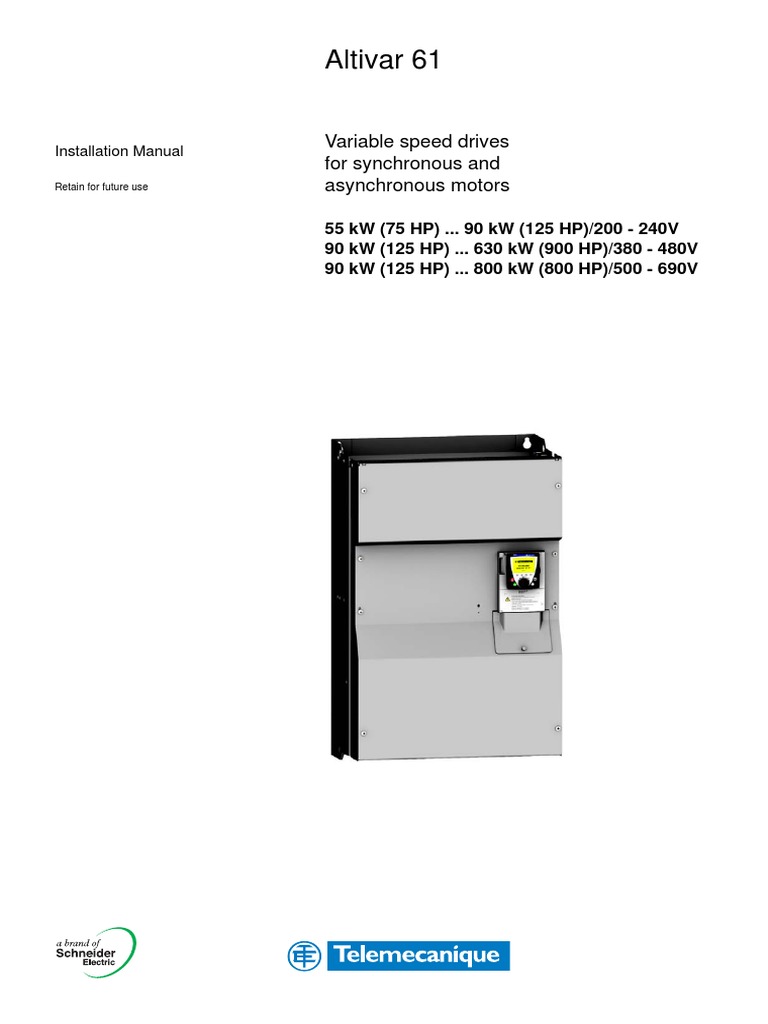 ATV61H D55M3X to D90M3X, ATV61H D90N4 to C63N4 and ATV61H C11Y to C80Y