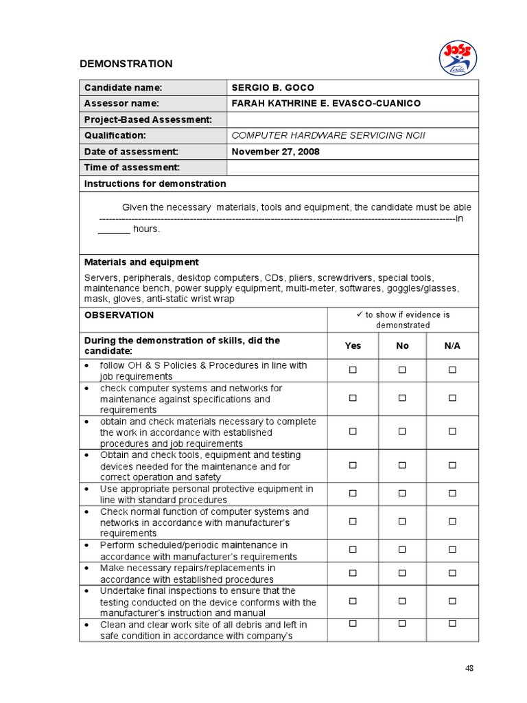 $%a&i'i#ation: COMPUTER HARDWARE SERVICING NCII