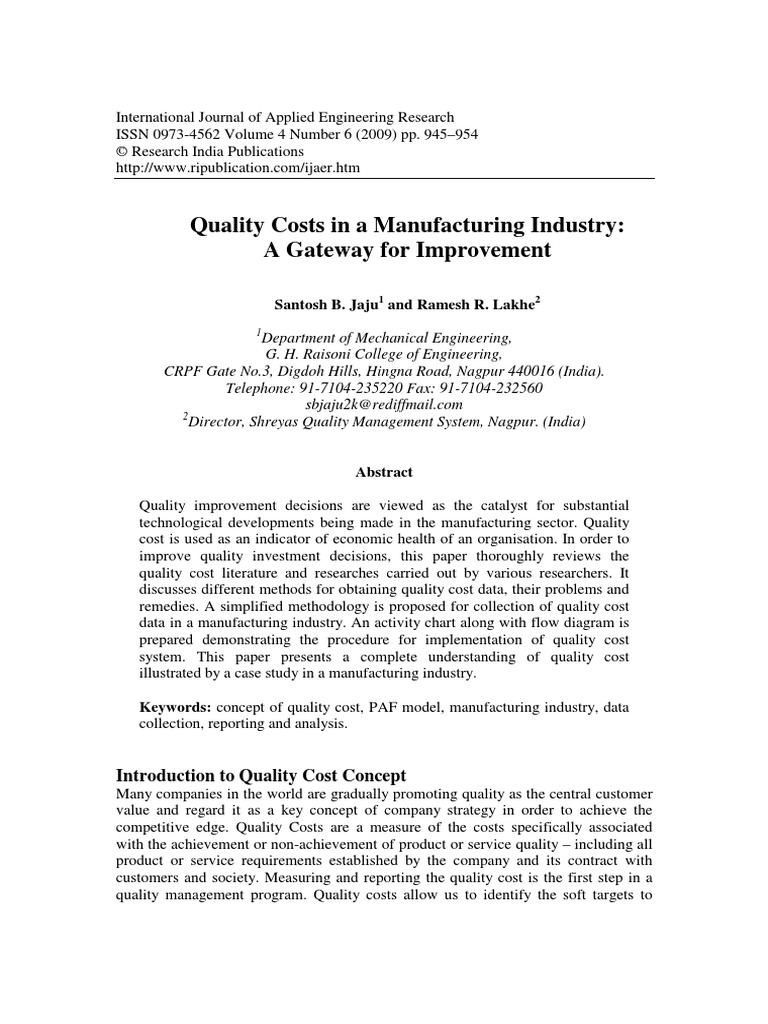 [6] Jaju, S.B., and Lakhe, R.R., 2000, Quality Cost Measurement: Problems and