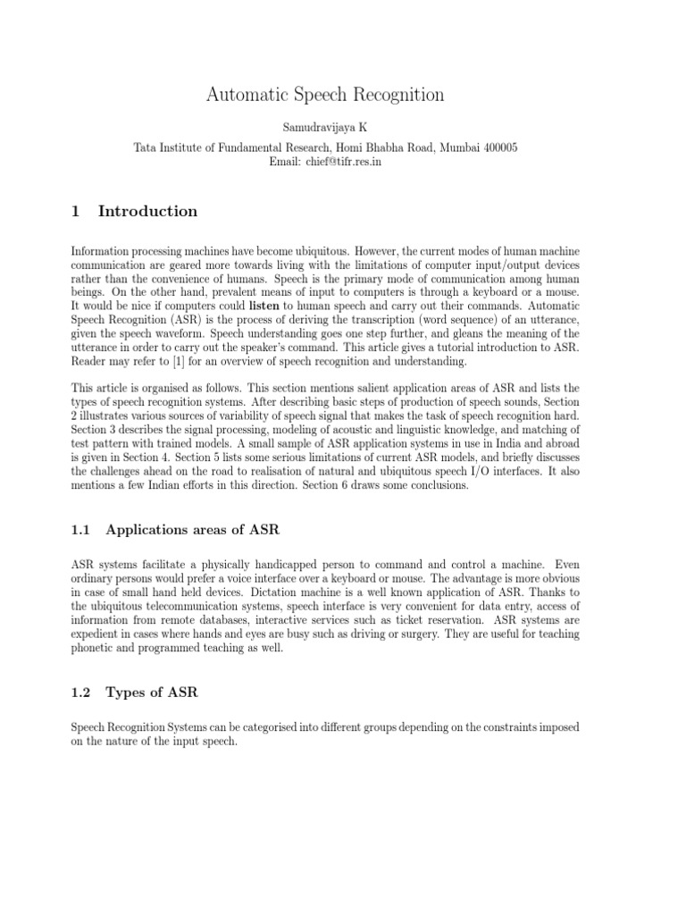 utterance in order to carry out the speakers command. This article gives a tutorial introduction to ASR.