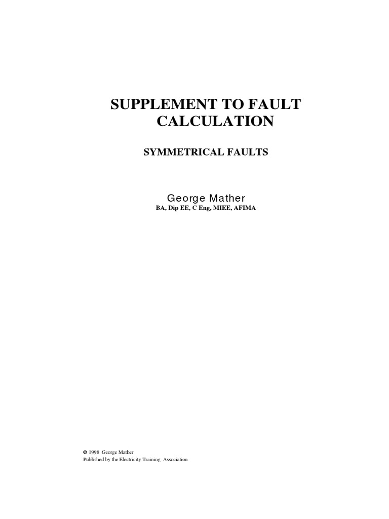 Training Association. Fault Calculation in general and Chapter 3 of the