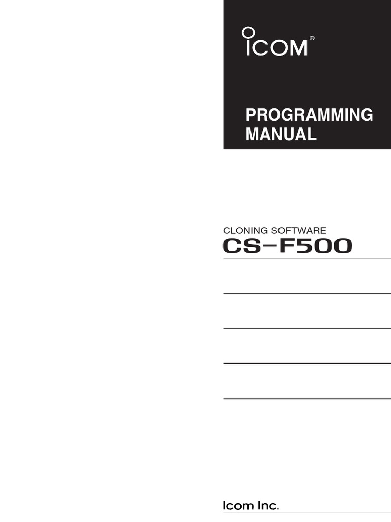 F610, IC-F620 and IC-F621 VHF AND UHF TRANSCEIVERS with the CS-F500 CLONING SOFTWARE, Revision 2.0. The