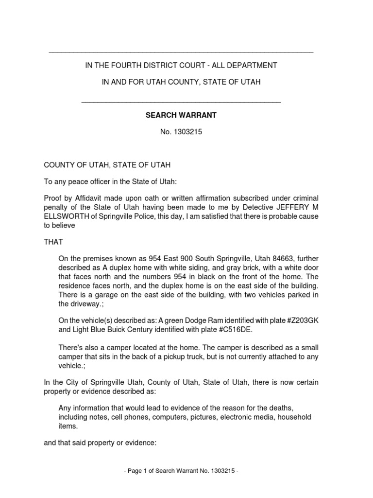 - Page 1 of Affidavit for Search Warrant No. 1303215 -