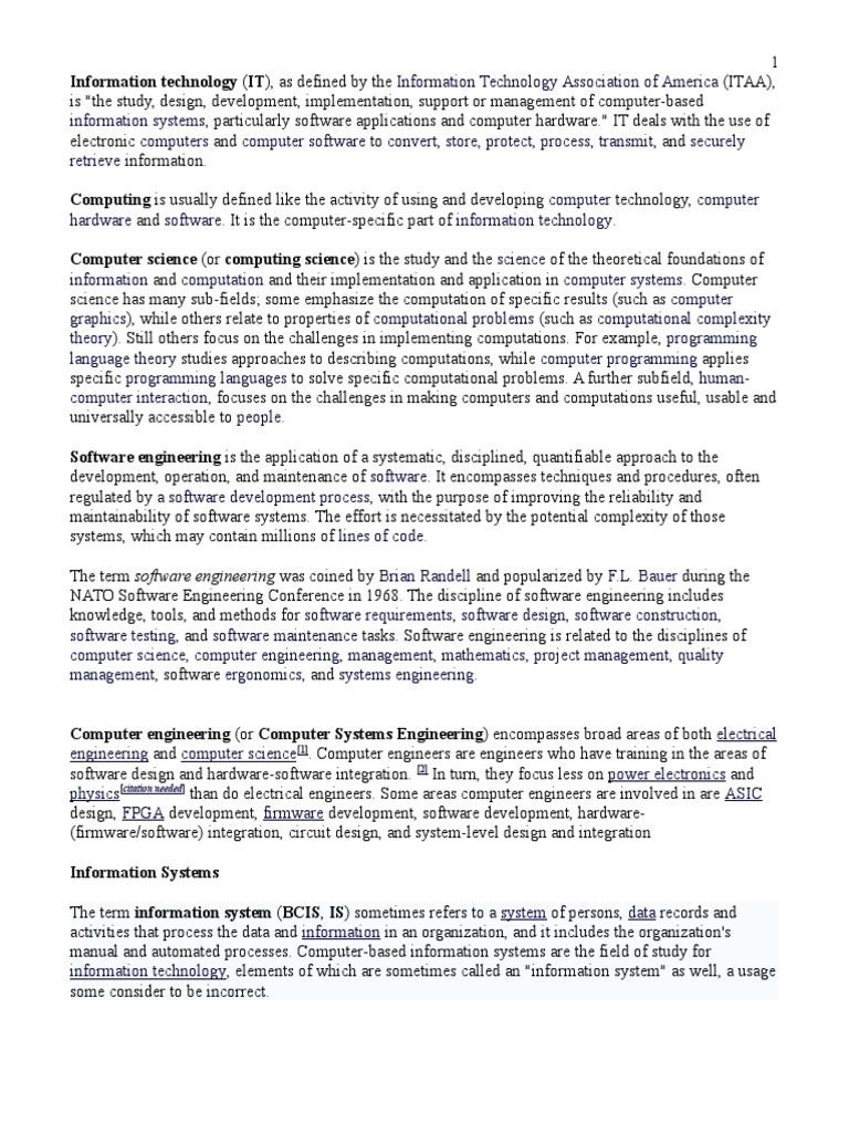 hardware and software It is the computer-specific part of information technology