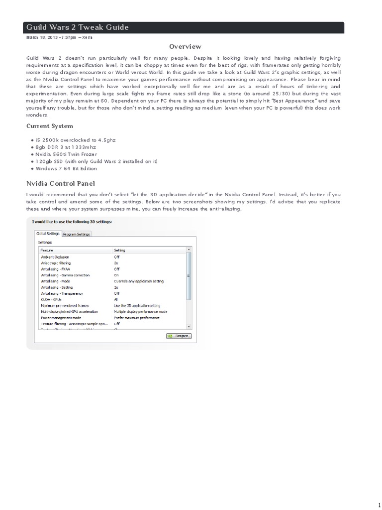 worse during dragon encounters or World versus World. In this guide we take a look at Guild Wars 2s graphic settings, as well